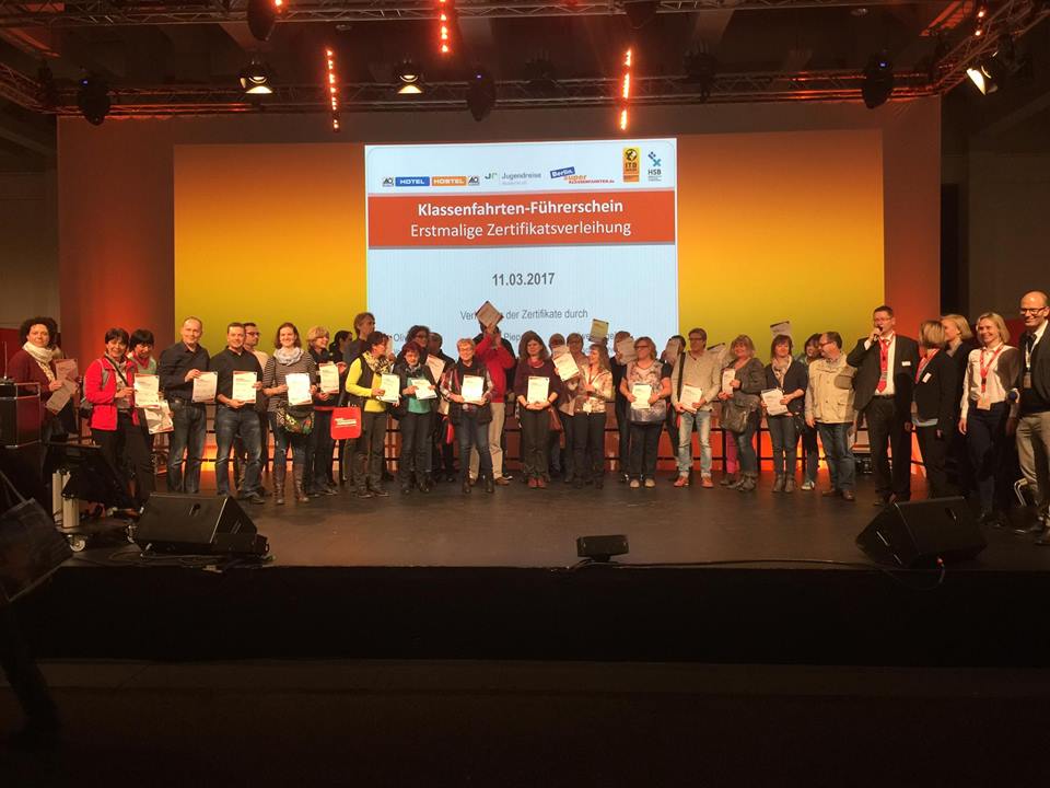 Erstmalig wurde auf der größten Tourismusmesse der Welt, der Internationalen Tourismus-Börse (ITB), der Klassenfahrten-Führerschein vergeben. Der Führerschein beinhaltet die umfassende Fortbildung zu Themen wie Reiserecht auf Klassenfahrten, außerschulische Lernorte, sportorientierte Klassenfahrten & Skireisen bzw. Sicherheit auf Klassenfahrt mit dem Bus. Weitere Informationen zum Klassenfahrten-Führerschein finden Sie unter www.superklassenfahrten.de/klassenfahrtenfuehrerschein