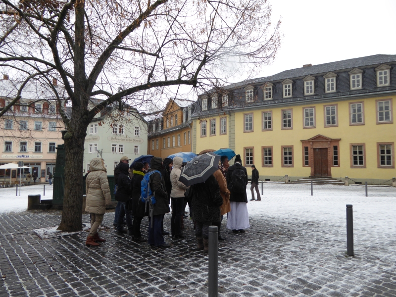 Mehr als 50 Teilnehmer konnten wir auf unserem Lehrerinformationsseminar in die Klassikerstadt Weimar begrüßen. Weimar als beliebtes Klassenfahrtenziel bietet zahlreiche Möglichkeiten zur Programmgestaltung, die wir den Lehrer/innen präsentiert haben. Während ein Teil der Gruppe die Gedenkstätte Buchenwald besichtigte, wandelte der andere "Auf den Spuren der Klassiker durch Weimar". Neben einem Besuch im Weimarhaus und einem Gang über den Weihnachtsmarkt stand am Nachmittag auch der Besuch einer Vorstellung im Deutschen Nationaltheater auf dem Programm. Den Abschluss bildete am Sonntag eine Führung durch das Bauhaus-Museum.Natürlich kamen auch bei dieser Tour die Unterkünfte nicht zu kurz: die Unterbringung erfolgte im neu eröffneten A&O Weimar, besichtigt wurde u.a. die Jugendherberge "am Poseckschen Garten".